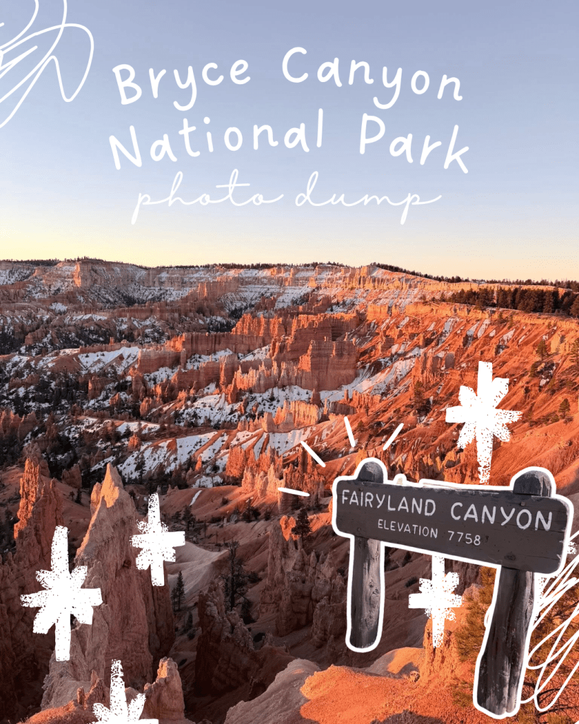 Day 4: Wake up early for a sunrise over Zion Canyon via the Zion Canyon Overlook Trail (1 mile round trip), drive 2 hours to Bryce Canyon National Park, make an obligatory stop at the Bryce Canyon Visitor Center for water refills, restrooms, stamps, and stickers, trek the Fairyland Loop Trail (8 mile loop), check into North Campground