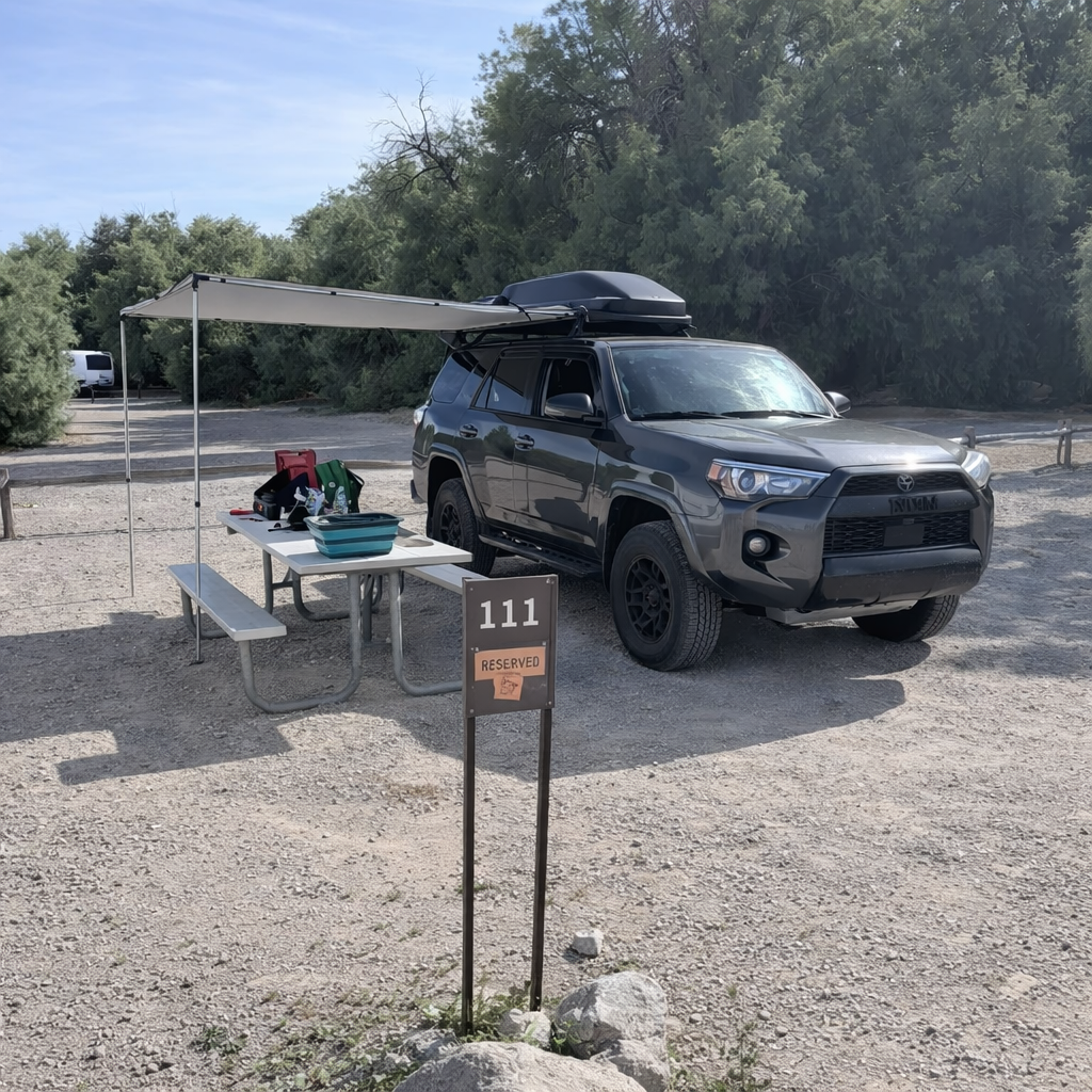 Campground full? Or just looking to stay in budget? Roughly 24 miles West of the Furnace Creek area just outside of the Death Valley National Park boundary, you’ll find ample dispersed camp sites on BLM land; Commonly called “The Pads”. I discovered this location by asking a park ranger about popular, boon-docking spots nearby. She told me to drive west out of the park on Highway 190 to mile marker 129. Once past mile marker 129, turn right onto the gravel road, keep driving until you see an unclaimed concrete slab, park, and set up camp. Seem to good to be true? I thought the same, but it really was that easy! Pinky-swear.