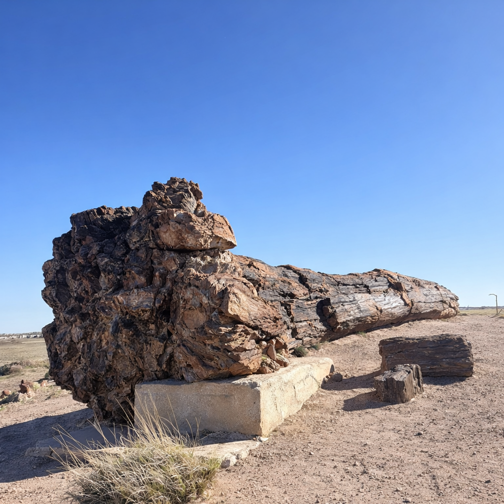 - At the end of the park’s main road is the Rainbow Forest Museum and the Giant Logs Loop (0.5 miles). Here you can see the largest petrified log in Petrified Forest National Park, 35 feet long, 10 feet across at its base, weighing about 44 tons, and 200-million-year-old. Mind-blowing. The Rainbow Forest Museum is also worth-wild, especially for understanding the prehistoric timeline and geology of the area.